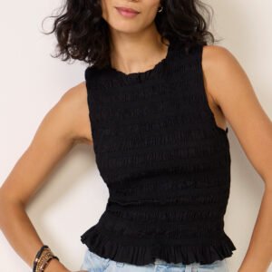 Side tie details elevate this summery linen-blend tank top by Michael Stars. featuring a v-neckline. cropped fit. and vertical center seams.