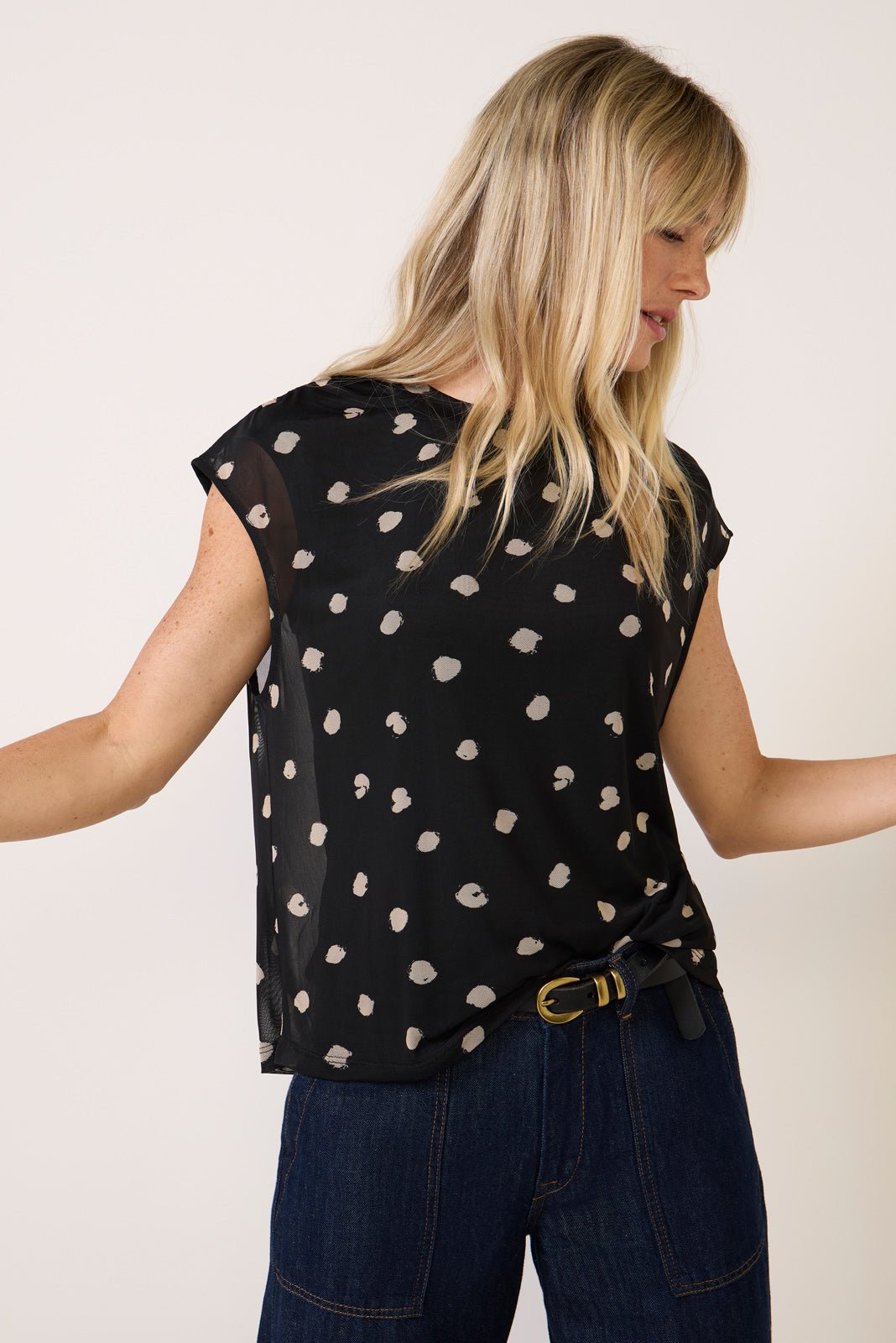 Crafted in a gorgeous printed mesh fabric. this elevated tee by EVEREVE features a crew neckline. cap sleeves. and a lined silhouette.