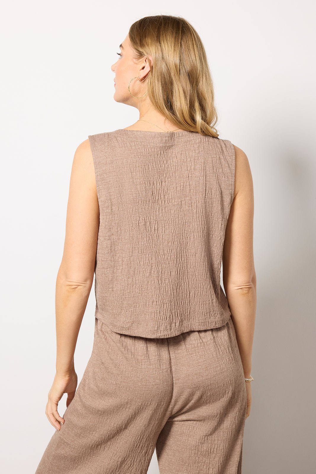 An easy summer essential. this button-front tank top by Z Supply is crafted from soft. textured knit fabric and features a relaxed silhouette. v-neckline. and cropped fit. Make it a two-piece set with the matching Solace Travel Pant.